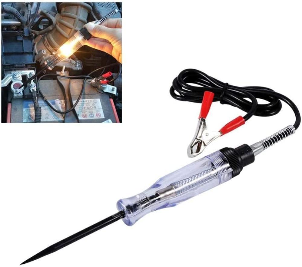 جهاز اختبار الدائرة الكهربائية للسيارة اختبار استمرارية الجهد الكهربائي للسيارات قلم اختبار الضوء الكهربائي للسيارات مع مسبار ستيل حاد وسلك زنبركي طويل للسيارات والقوارب والمقطورات والدراجات النارية