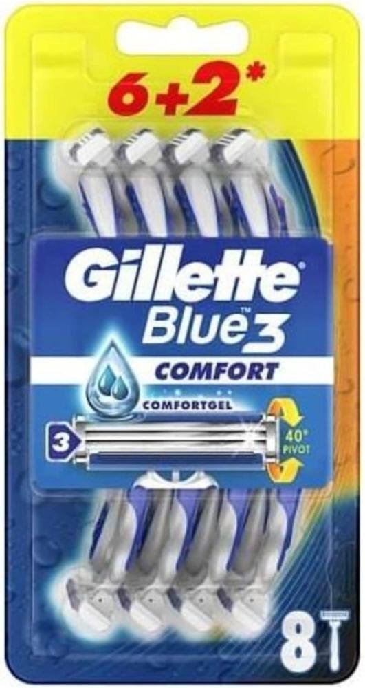 جيليت بلو 3 شفرات حلاقة مع جل مريح للرجال - 8 قطع