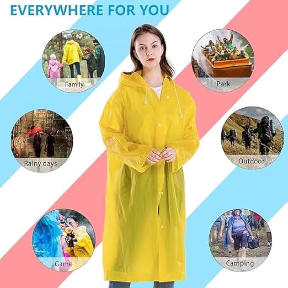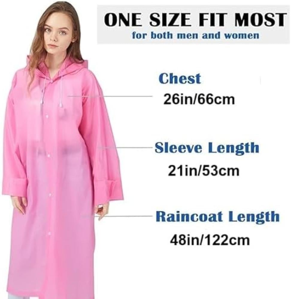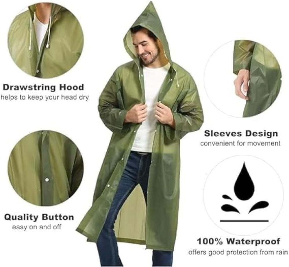 EVA Raincoat Waterproof Reusable Portable Breathable Rain Poncho with Drawstring Hood and Comfortable Sleeves Design For Men & Women Standard Size One Fits All (Color May Vary)